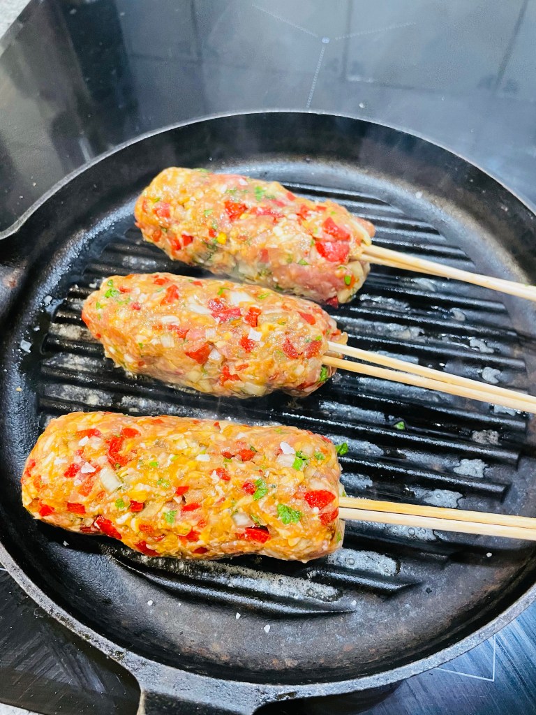 - Provstek en klick smet i en stekpanna med smör för att känna att den är lagom kryddad. Addera annars mer kryddor efter tycke och smak. Använd sedan två matskedar för att forma klickar av smet i stekpannan. Platta till dem lätt så att det blir biffar. Stek någon/några minuter på varje sida.