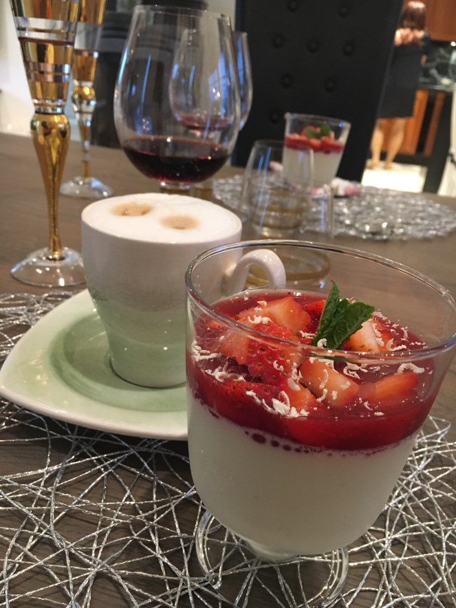 Pannacotta med jordgubbar, som ni förstår blev vi väl omhändertagna och väldigt mätta och belåtna, tack för en trevlig kväll