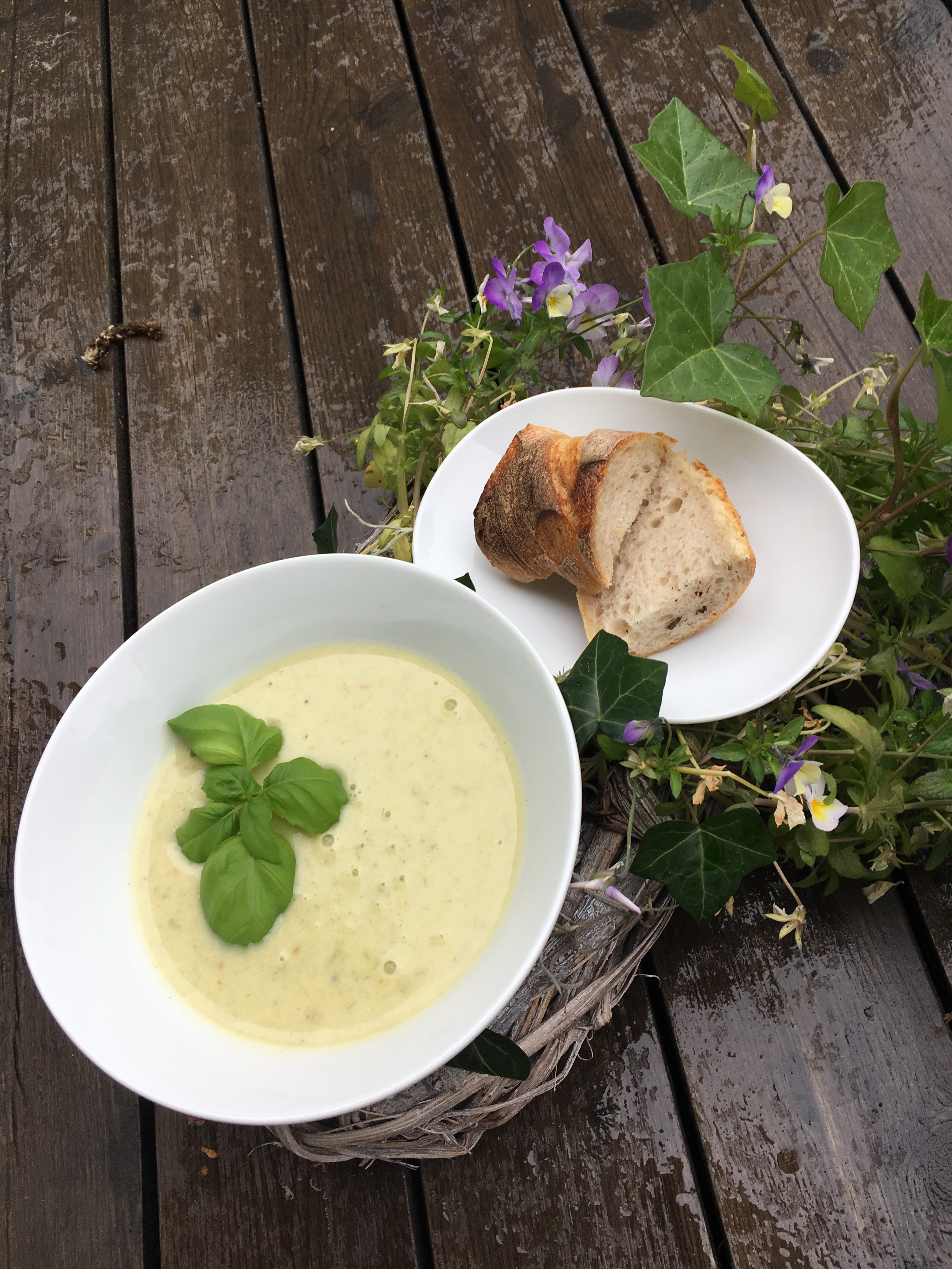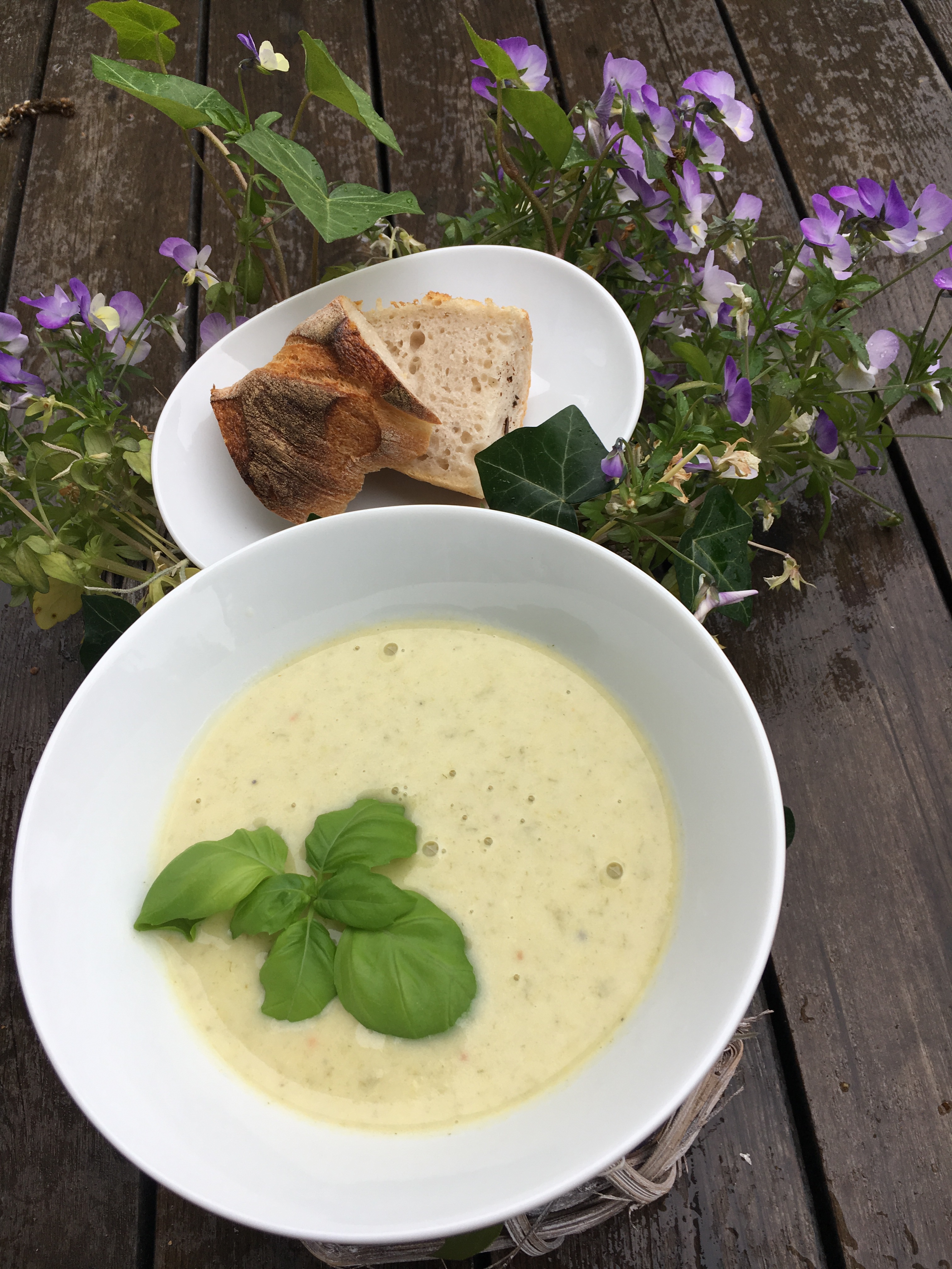 Tittar man ut på vädret idag kan man tro att det är 1 oktober eller möjligtvis november med regntung himmel och gråa moln. Så därför fick det bli soppa till lunch. Vi var i Vara på förmiddagen och köpte med oss stenugnsbakad baguette från konditori Nordpolen som vi åt till soppan