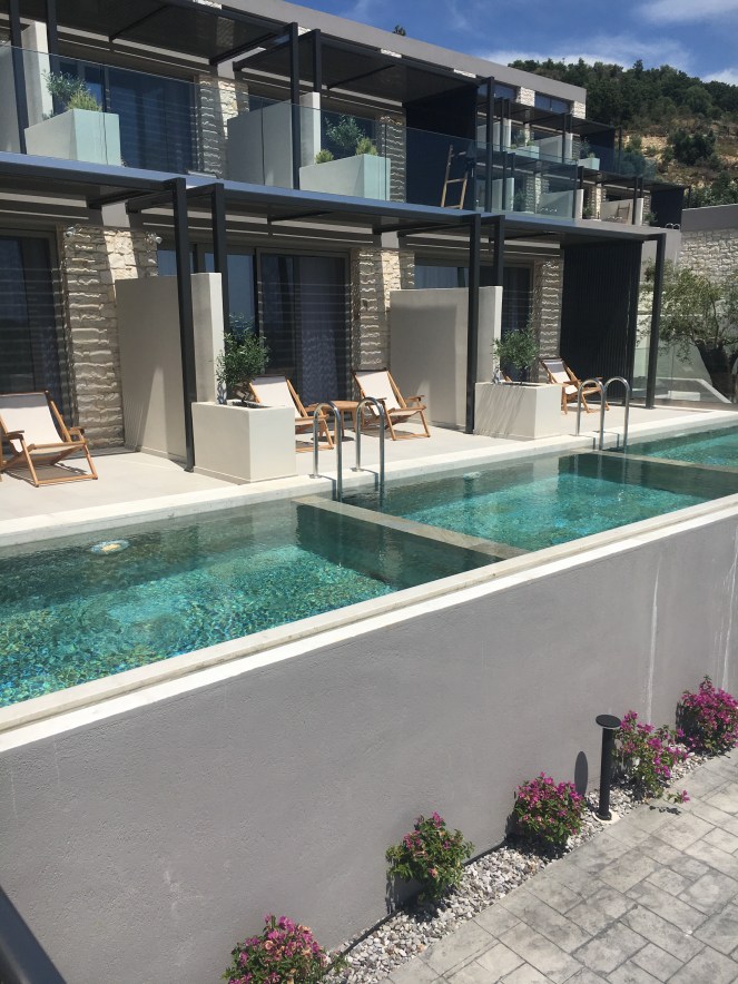 Årets semestertripp blir till det grekiska fastlandet och byn Sivota. Resan hit gick hur smidigt som helat inga köer varken vid incheckning eller säkerhetskontroll och när vi skulle boarda planet. Flygresan tog 3 timmar och sedan landade vi på Preveza flygplats som är jätteliten. Där landar ett plan i taget så det gick hur snabbt som helst att få sitt bagage. Därefter väntade en bussresa på 1,5 timme genom ett gömt och lummigt landskap vid kanten av medelhavet. Väl framme checkade vi in på hotellet som är helt nybyggt och ganska litet men väldigt fint. Vi har bokat dubbelrum med pool.