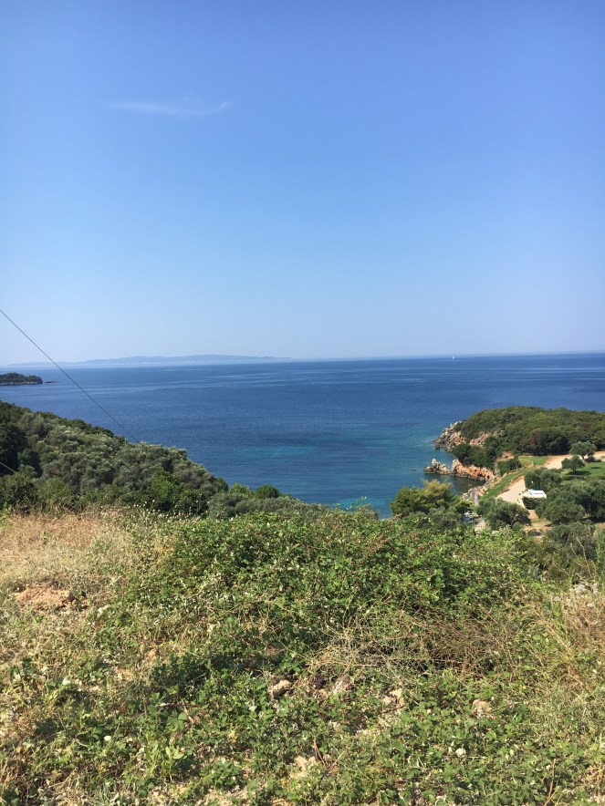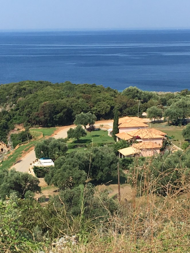Imorse åt vi frukostbuffé och bytte om till träningsskorna och gick en promenad på 8km längst slingrig landsväg utan trottoar i ett mycket kuperat landskap i 32 grader och stekande sol. Efter den nära-döden-upplevelse ligger vi nu som strandade valar på varsin solsäng.