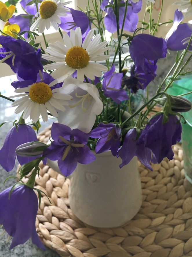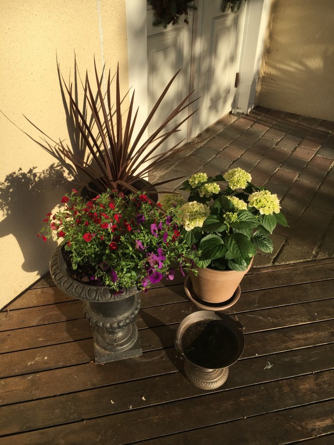 När man varit borta ett tag så behövs det fixas lite så idag har vi trimmat, klippt gräset och planterat nya blommor i krukorna.