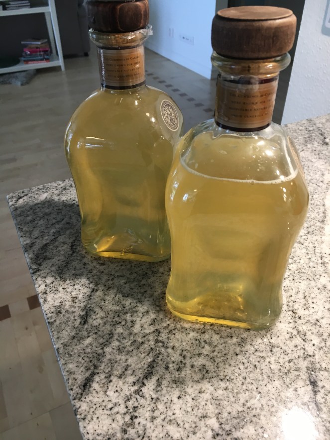 Så jag gav mig ut och plockade klasar av Älgört. Dom kan jag meddela är rätt fulla med rapsbaggar så det var ett sjå att bli av med dem. Sen följde jag receptet och nu efter ett par dagar silade jag av den och smakade av och……. nä inte min favorit. Den smakar inte illa men lite för mycket blomsmak för mig men nu har jag provat.