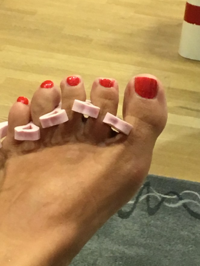 Igår tog jag en halvdag ledigt från all mockning, målning och åkte till Överby för shopping och fotvård
