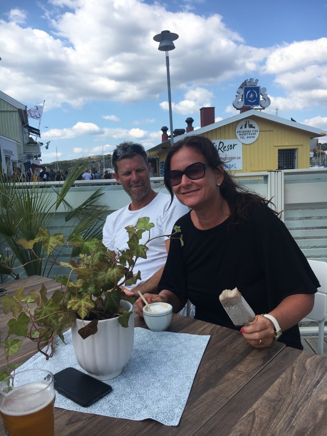 Vid halvårs redovisningen i spelbolaget visade det sig till allas förvåning att gubbarna råkat vinna, det har knappt hänt tidigare då vi i stort sett alltid vinner. Nåja då fick vi enligt överenskommelse bjuda dem på något trevligt så det blev Marstrand med trerätters och övernattning. Att vi lyckats pricka in en helg med 32 grader och sol var ju inte fel.