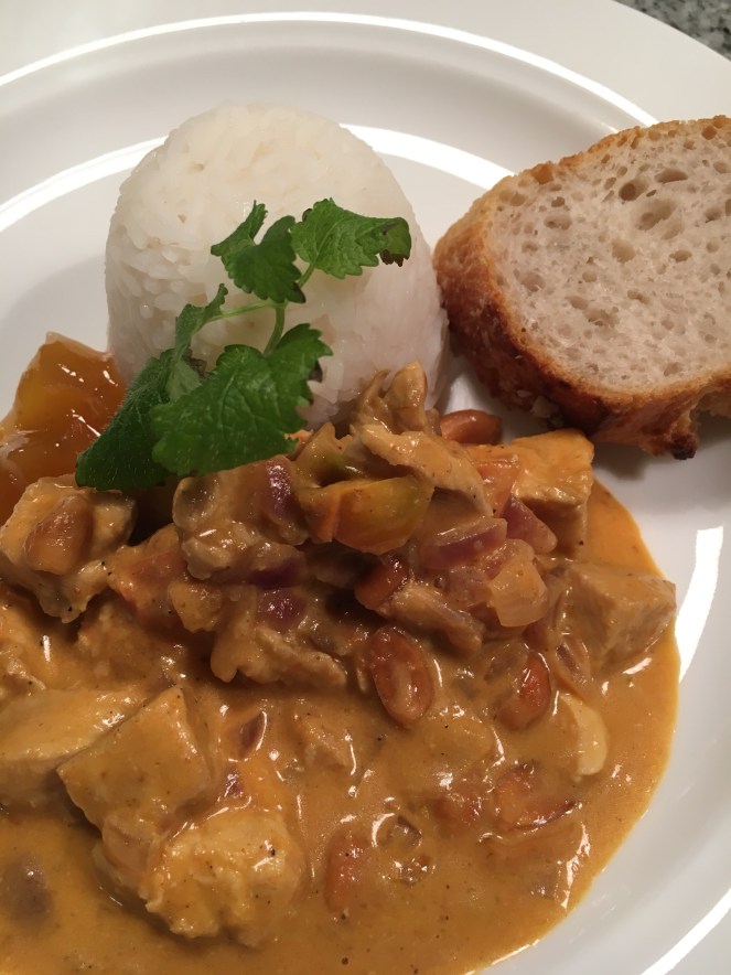 Fredagskvällen serverades det en het kycklinggryta med jordnötter och ris.