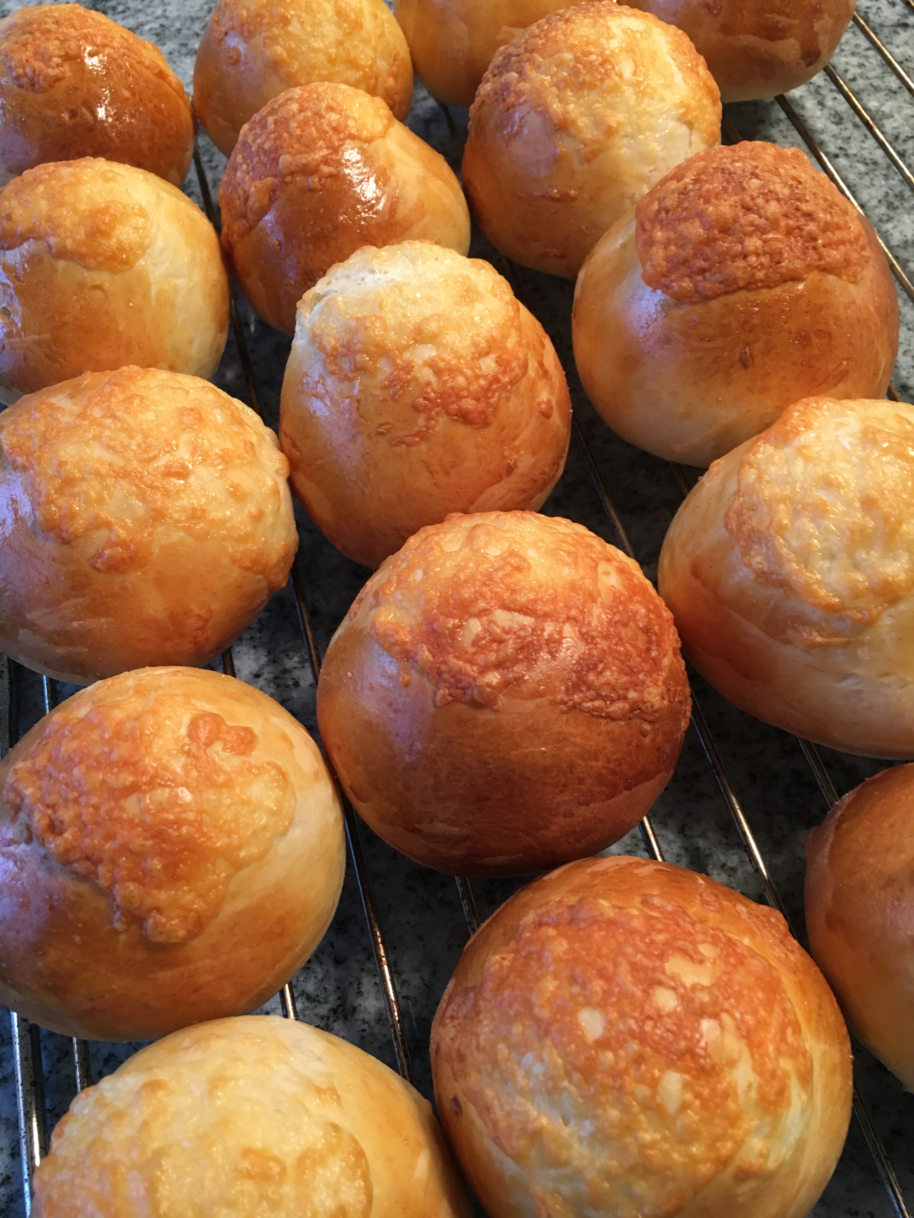 Jag har lite svårt för ”köpebröd” på morgonen, vet inte varför men därför försöker jag se till att det finns hembakat bröd i frysen. Nu var det slut och då bakade jag rosenbröd efter ett grundrecept i vår kokbok som blir himla gott. Inte ett frö hade jag hemma att toppa med så det fick bli riven ost och det är ju inte äckligt😂.
