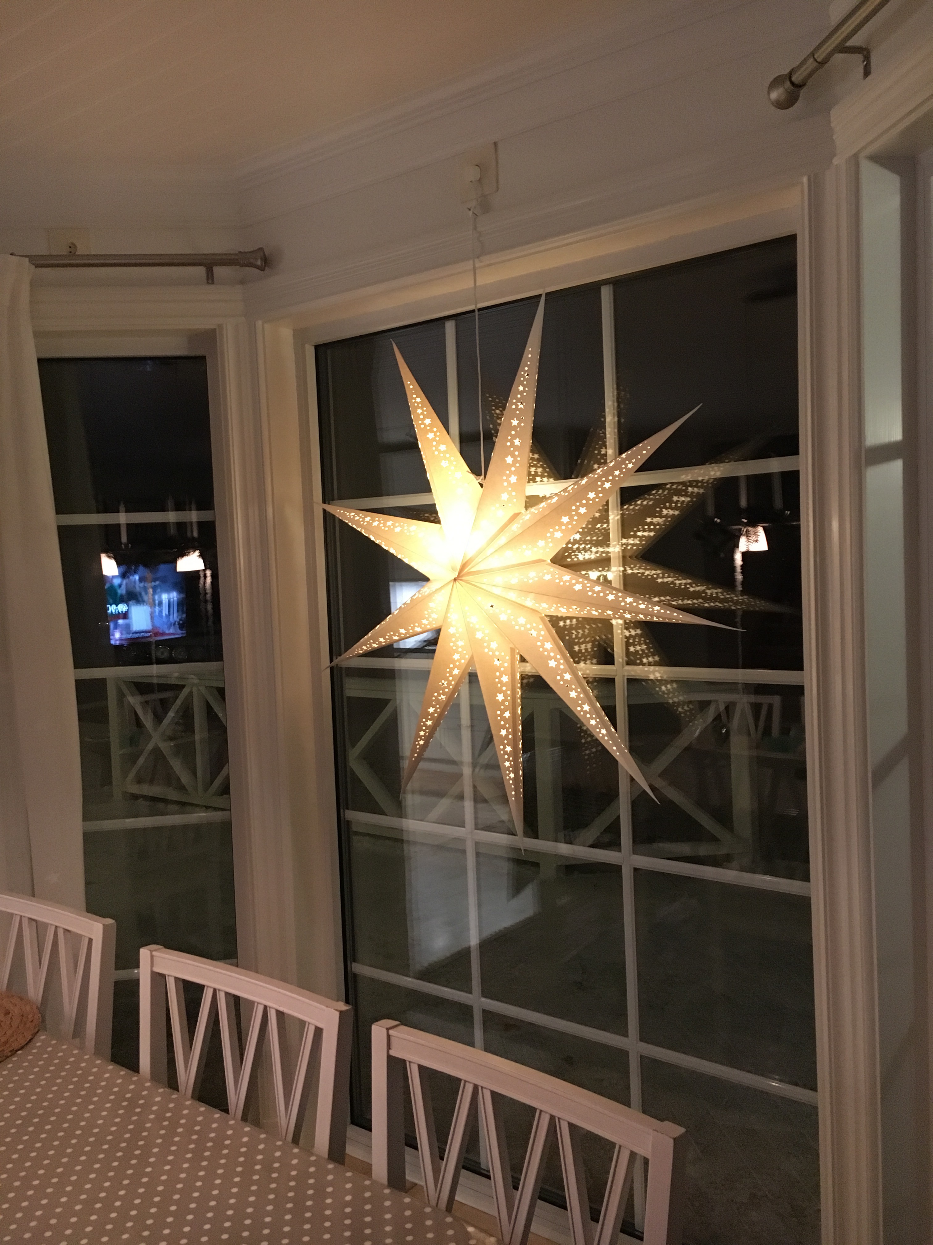 Idag har jag grejat lite inför advent. Stjärnan är på plats i fönstret och ljusslingorna i flaggstången.