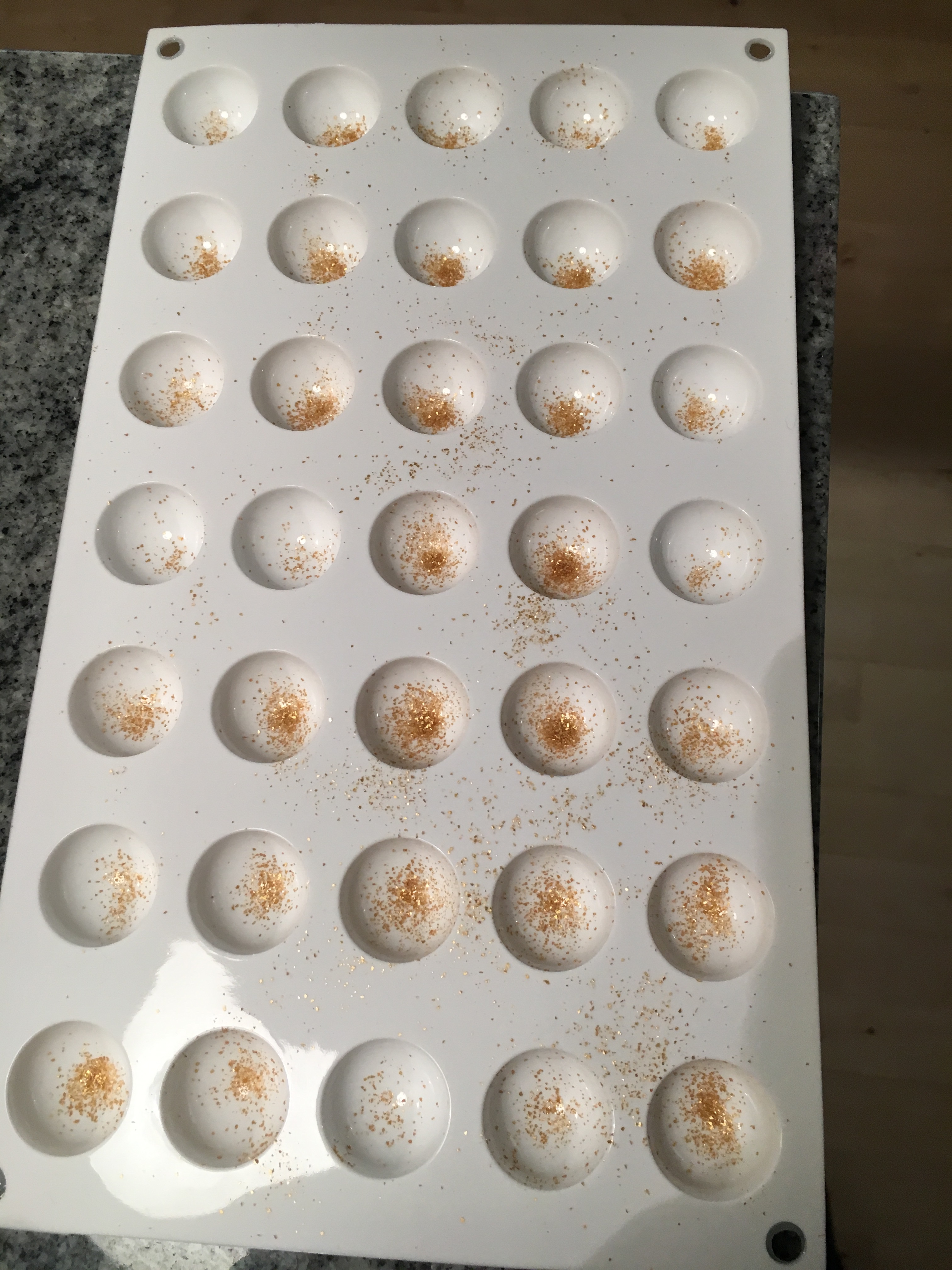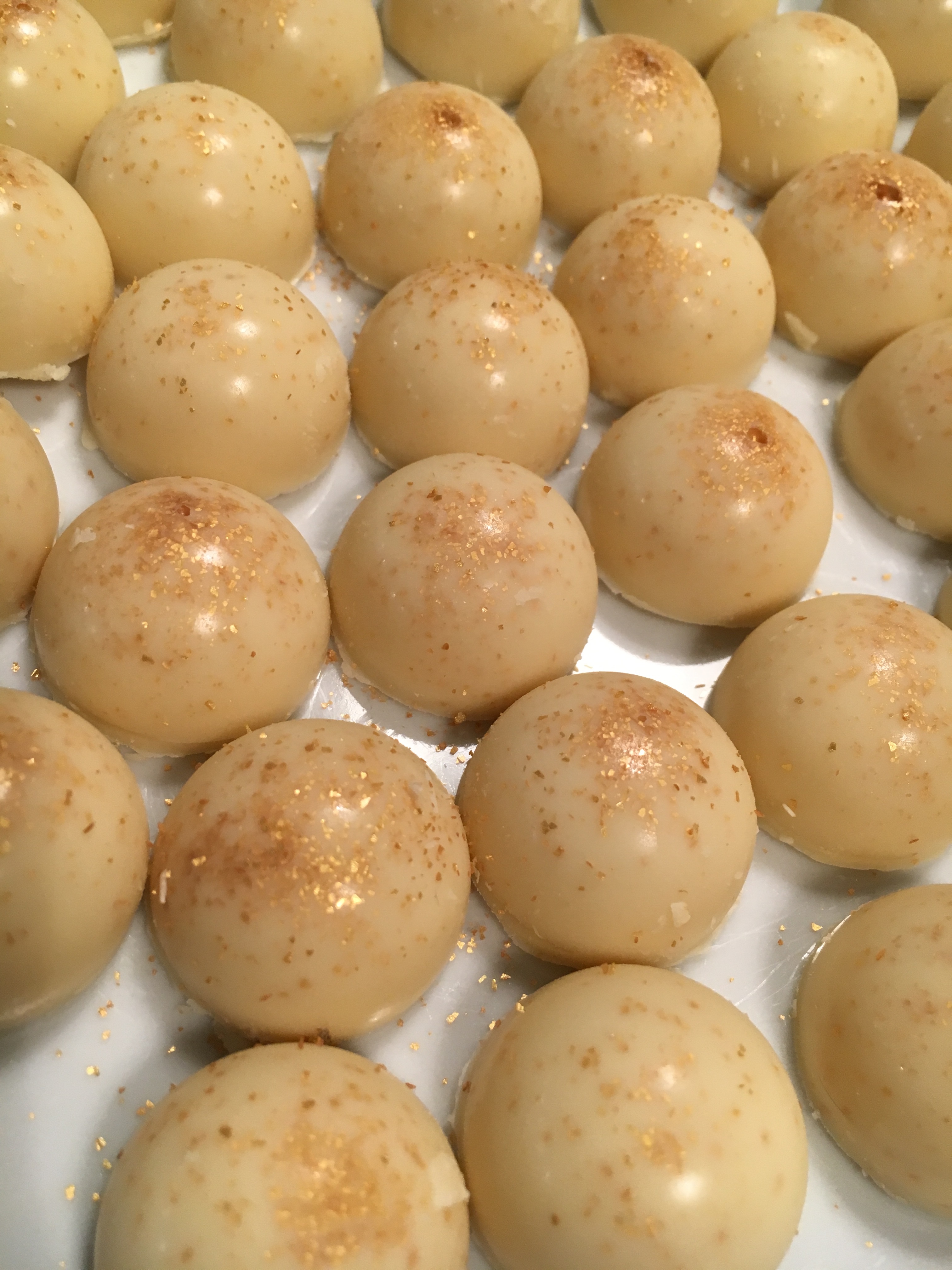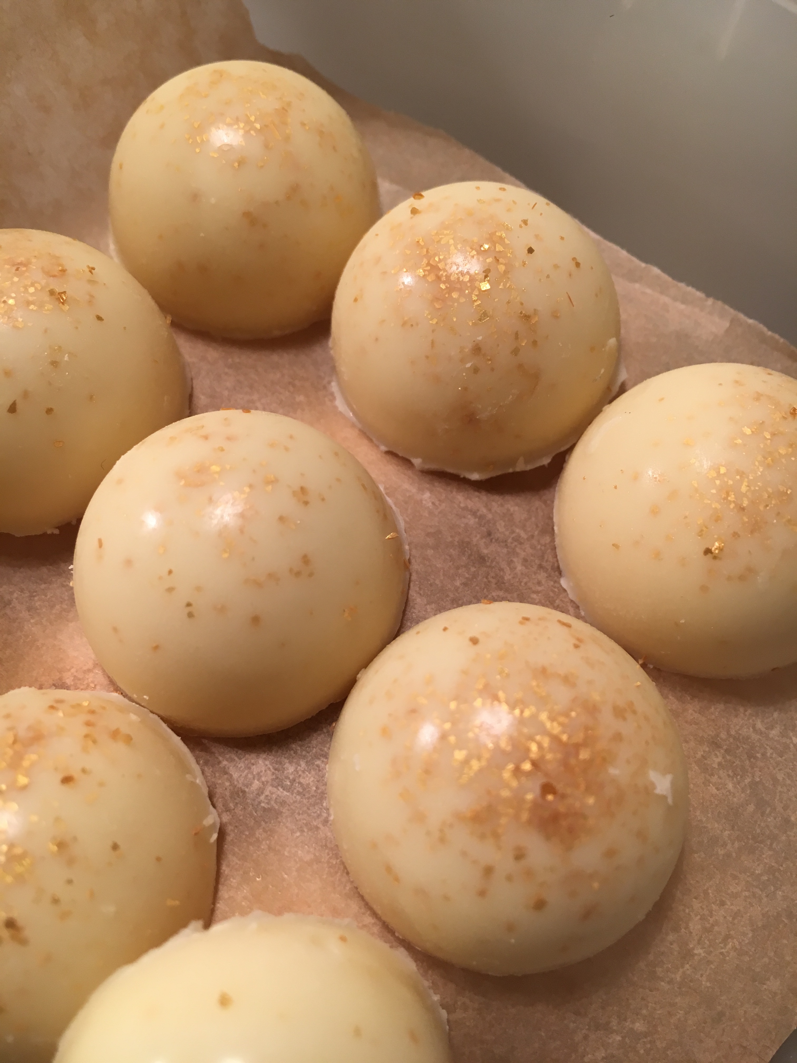 Jag har beställt lite pralinformar och de kom med posten idag så då ville jag testa direkt. Hade dessvärre inte så mycket choklad hemma utan bara vit så det fick det bli. Praliner med vitchokladganache med citron.
