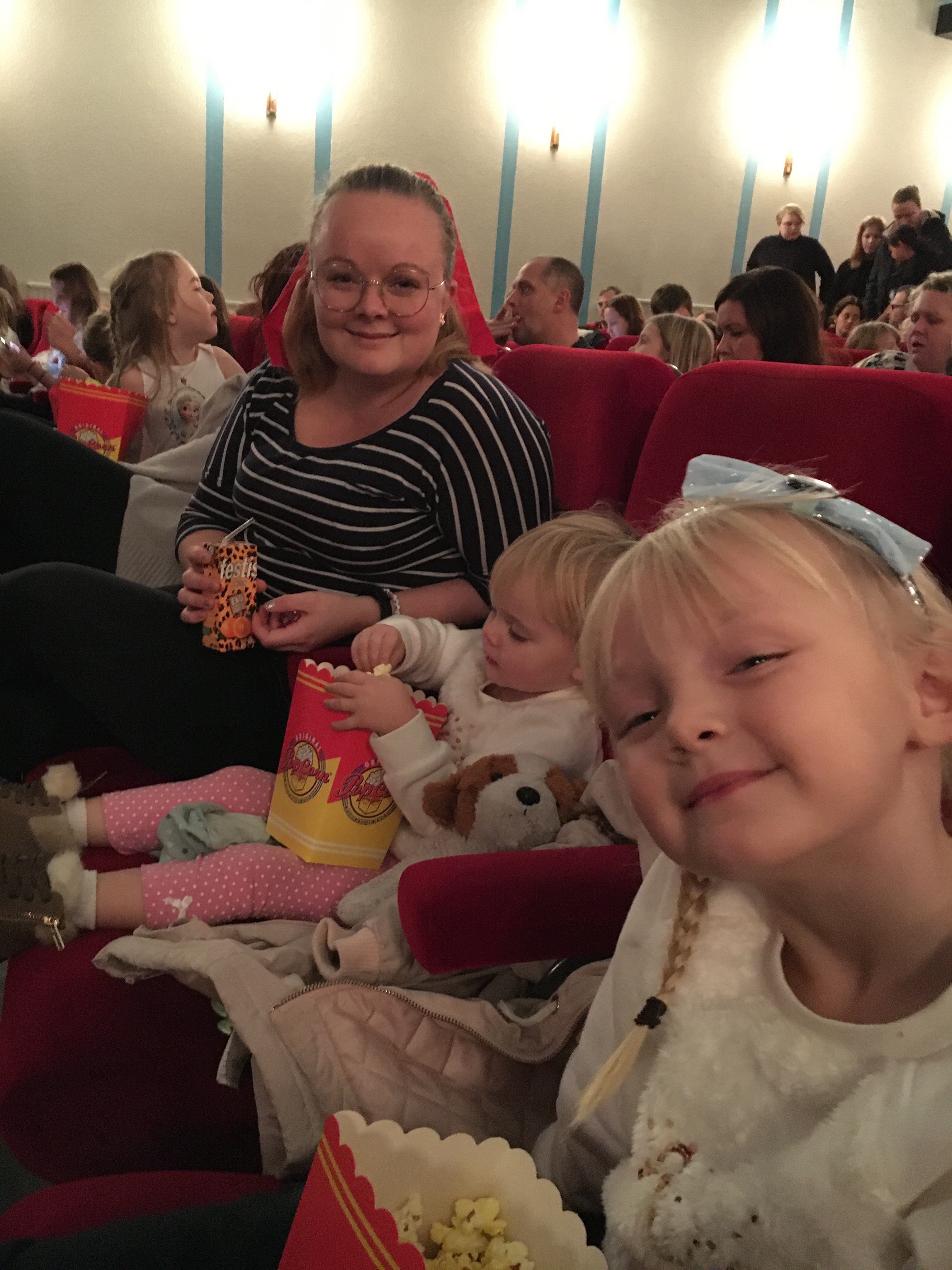Juldagen är ju en riktig biodag då flera filmer har premiär. Idag blev det Frost 2 på park i Vara med Lilja, Molly och Lovisa. Inte illa att kunna sitta stilla i en och en halvtimme när man är 2 år som Molly.