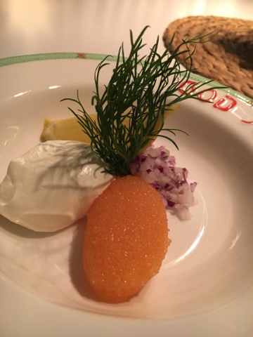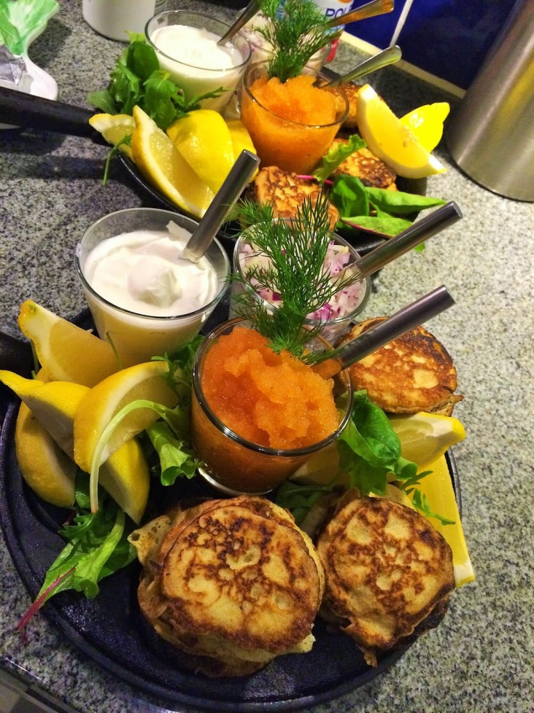 En annan nyår kanske 2015-16 då serverades blinier med löjrom till förrätt, tips att lägga upp förrätten på plättlaggen. Jag älskar både blinier och löjrom så detta är nog min favorit.
