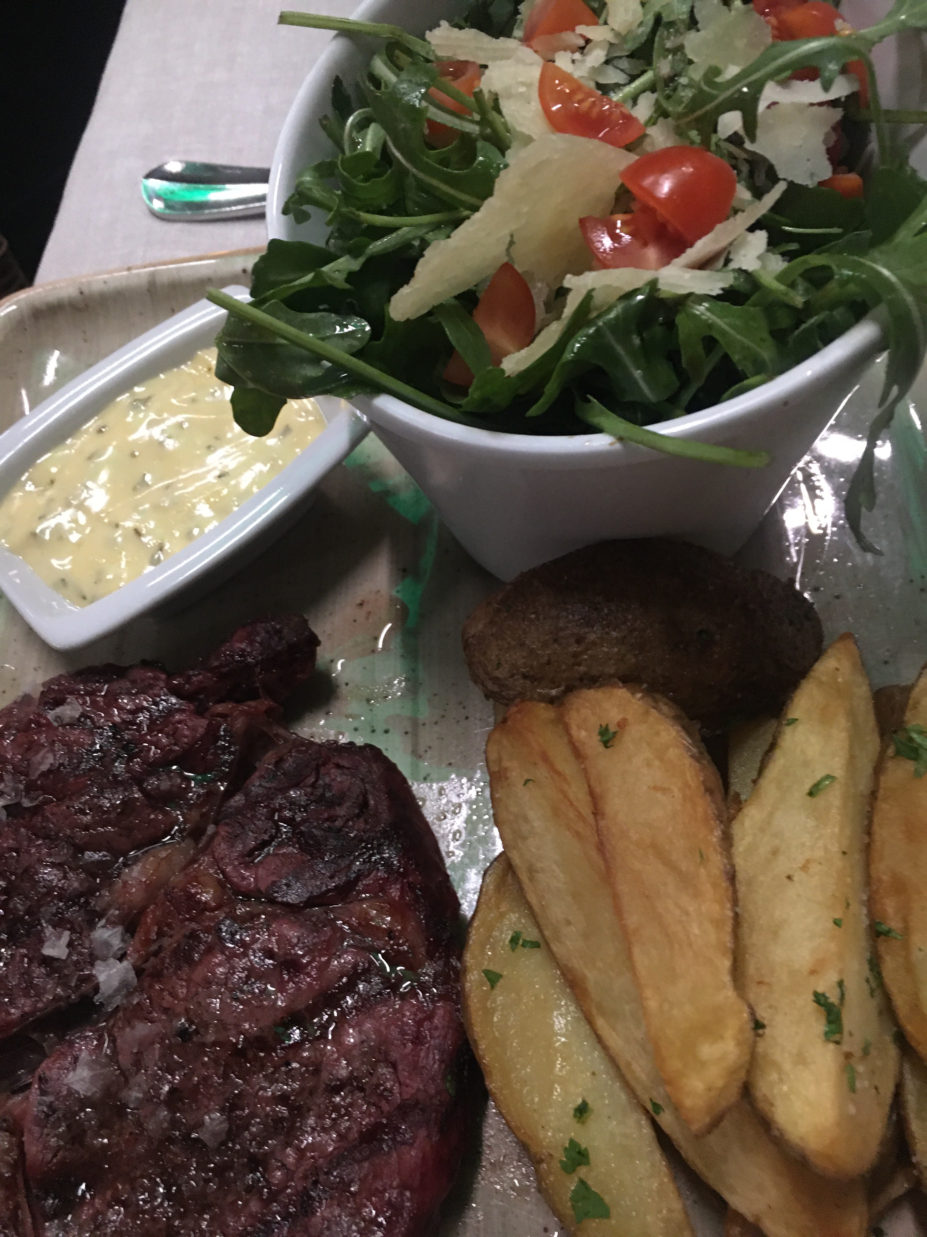 Igår åt vi på en kött restaurang och Benny beställde angussteak och jag revbensspjäll.