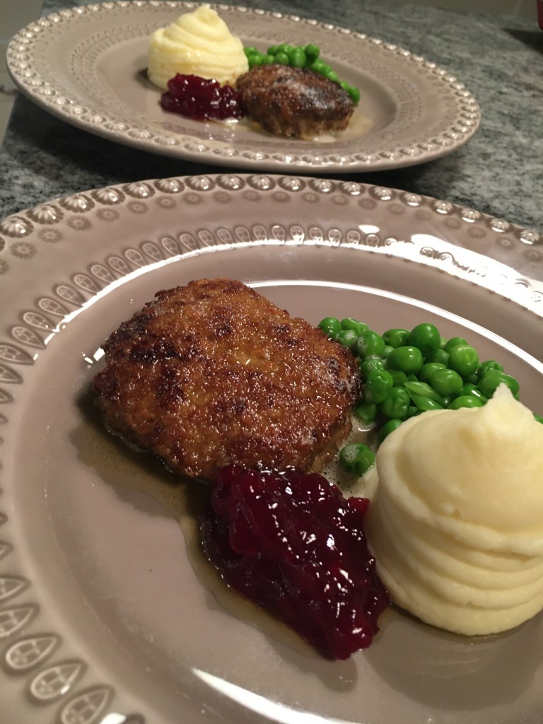 Vi Àter Wallenbergare med potatispuré, Àrtor, lingon och skirat smör i kvÀll.