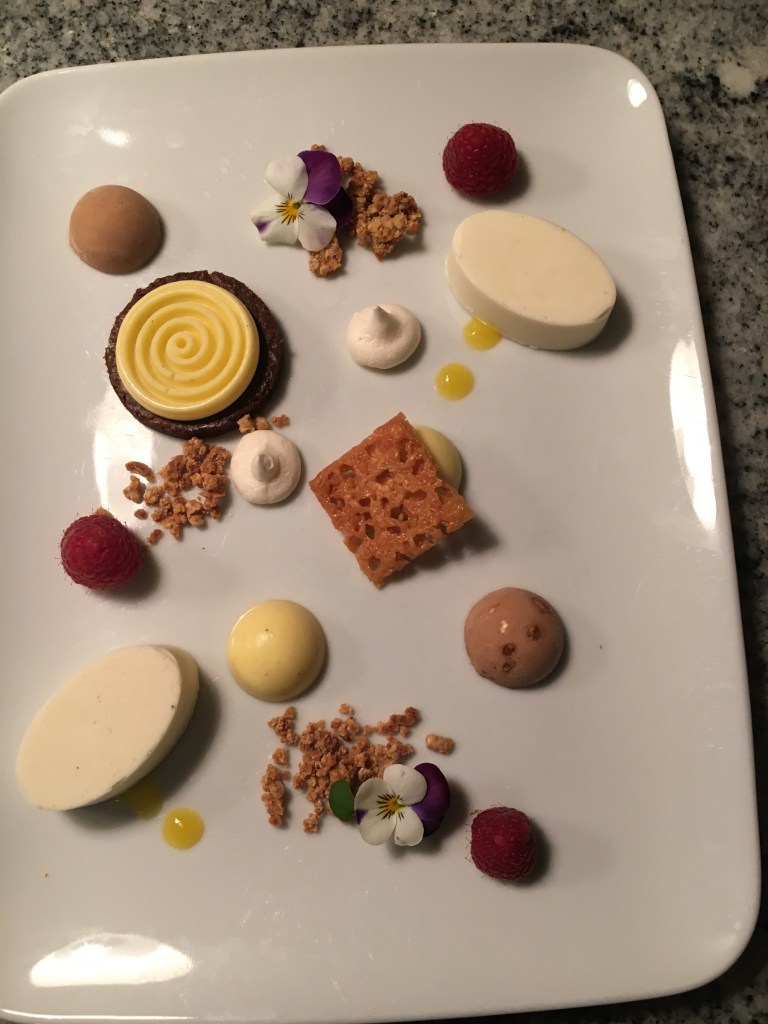 Och som avslut: kokosparfait, tobleroneglass, mangopannacotta och kokosflarn