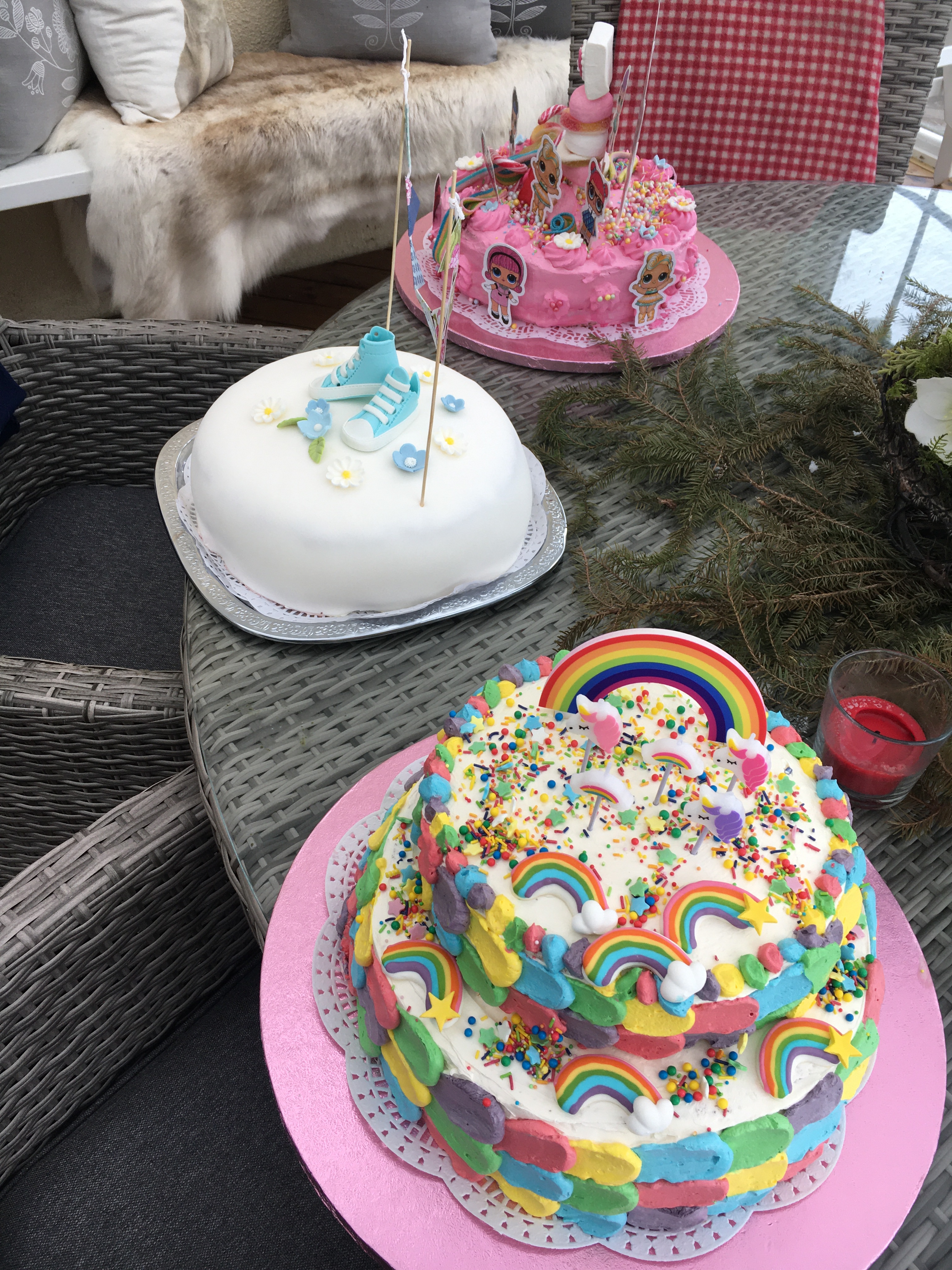 Så då blir det tårtkalas om en liten stund. Jag har också förberett Liljas tårta till imorgon och det skulle vara en regnbågstårta med alla färger.