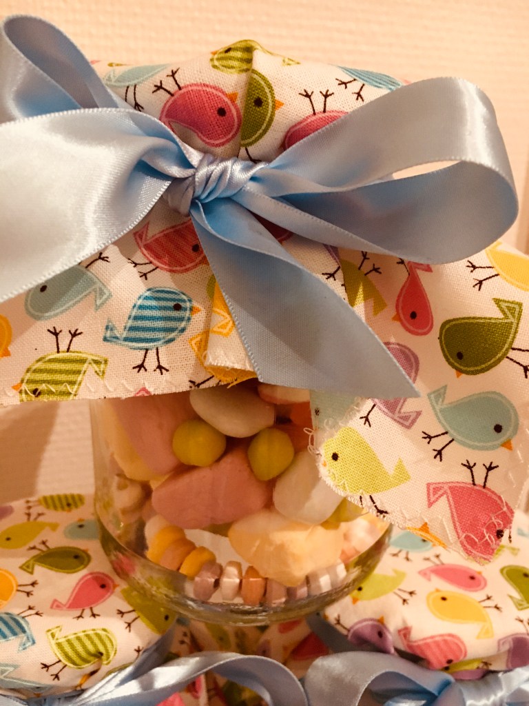 Istället för påskägg till barnbarnen har jag pysslat lite och i år blev det påskburkar. Perfekt att återvinna de gamla burkarna man har i skåpen.
