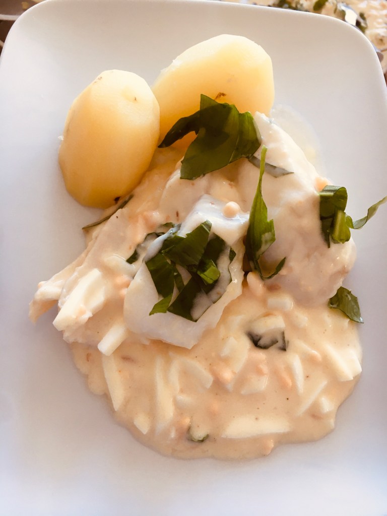 Idag blev det torsk med äggsås och kokt potatis.