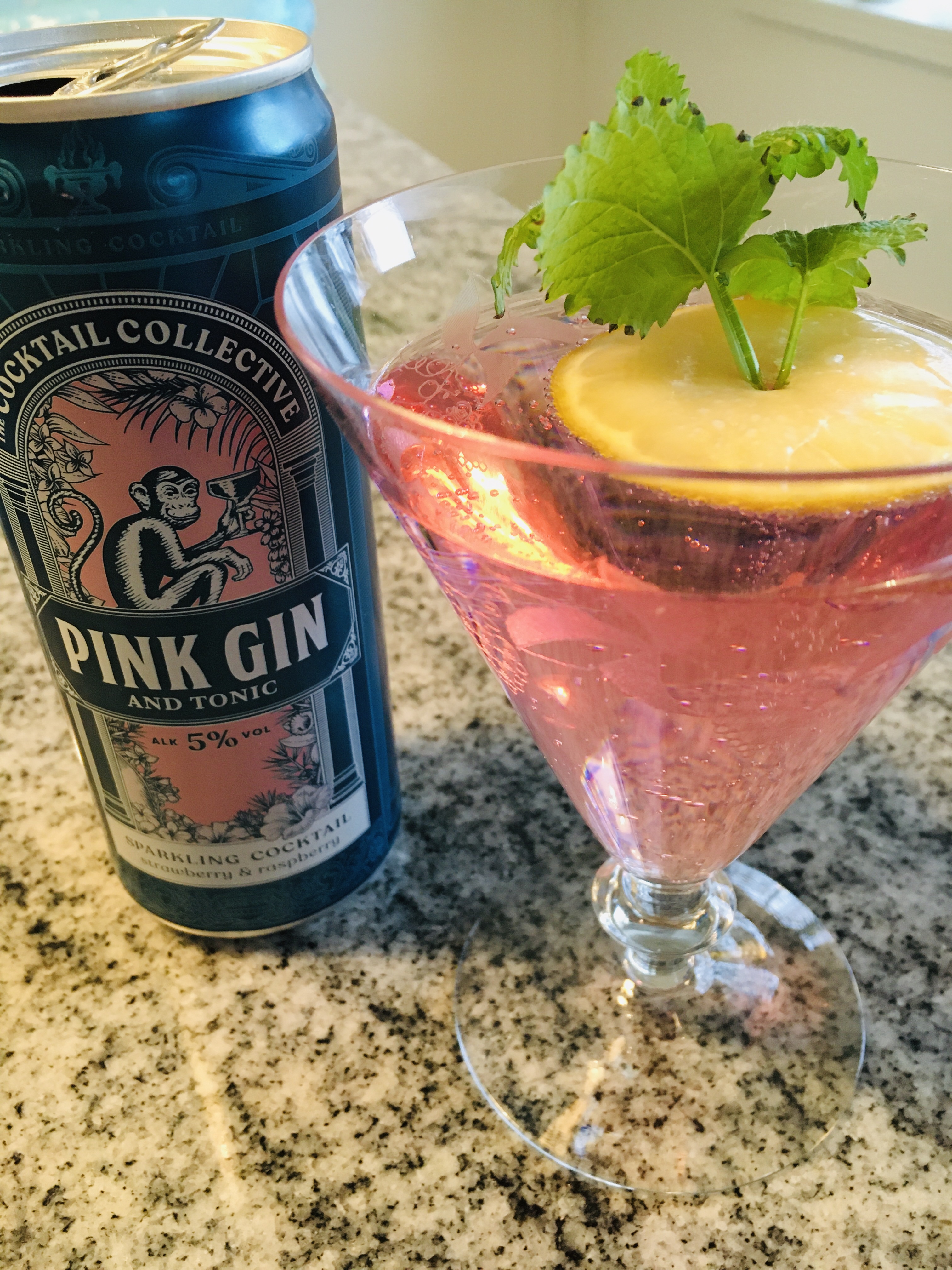 Testade pink gin på burk som finns på Systembolaget. Inget för gin tonic älskare då den är söt och inte smakar så mycket sprit men jag som gillar söta cocktails tycker den var god. Självklart serverar jag med en fryst citronskiva.