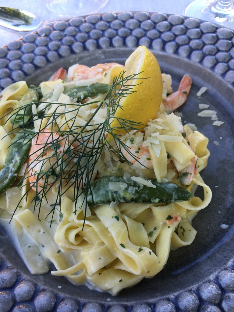 Vi startade med en väldigt god fördrink ”Hugo” och sen ett super gott kantarellflarn