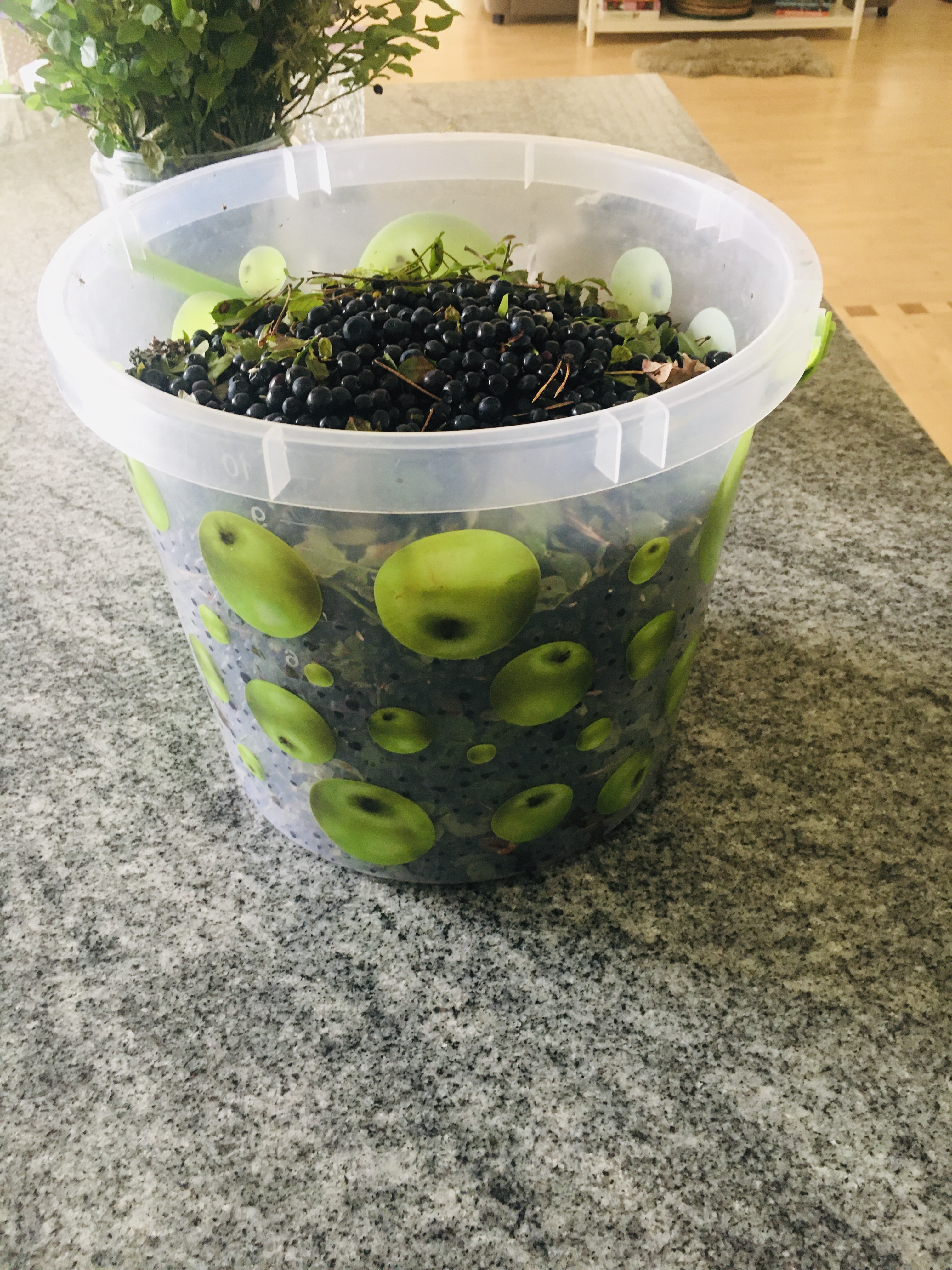 …för jag har fyllt frysen med blåbär. Jag har aldrig i mitt liv lyckats plocka mer än några dl blåbär för det är så tråkigt men ett sådant här blåbärs år måste man ju plocka. Nästan 10 liter fick vi ihop på en och en halv timme.