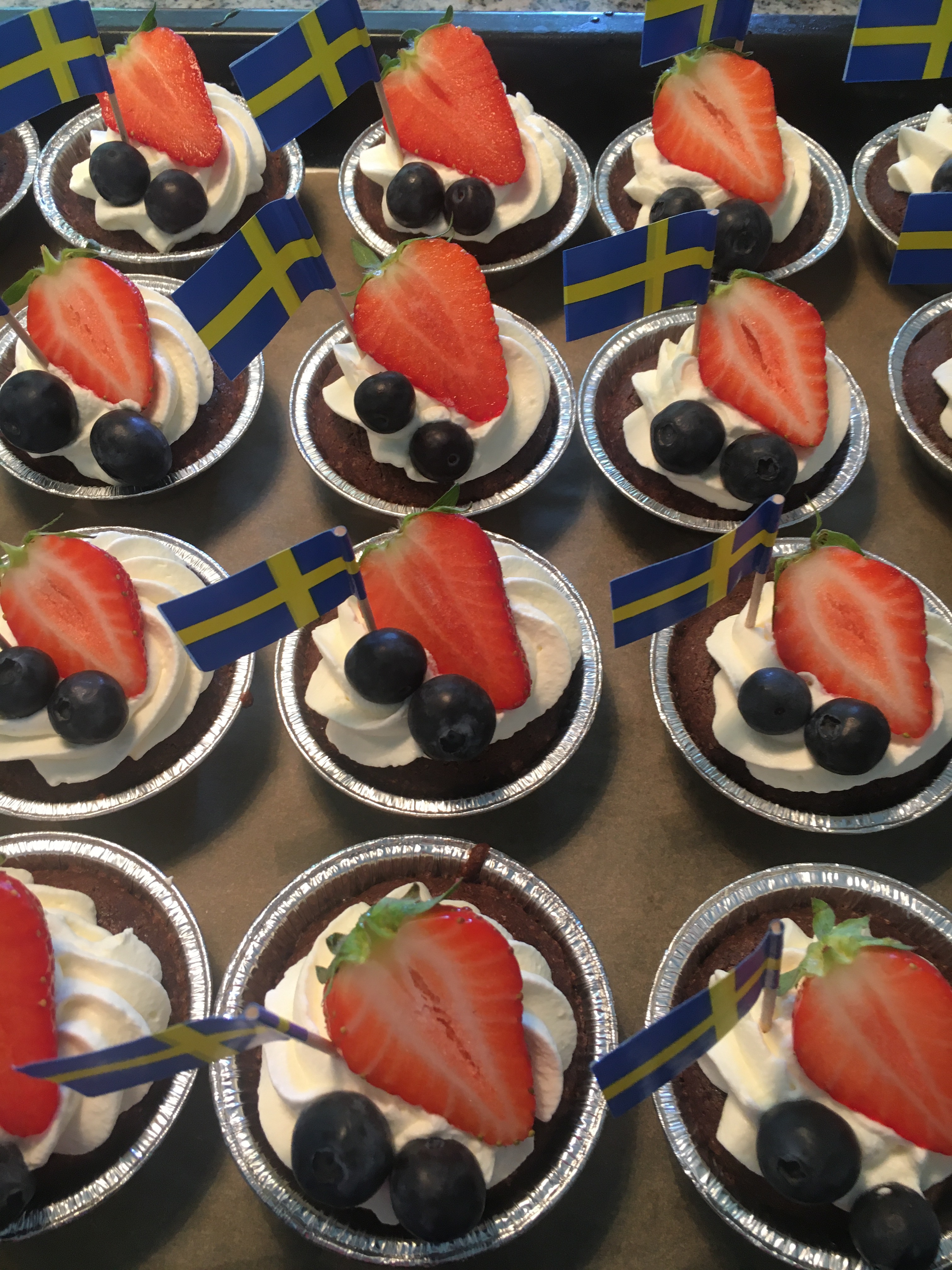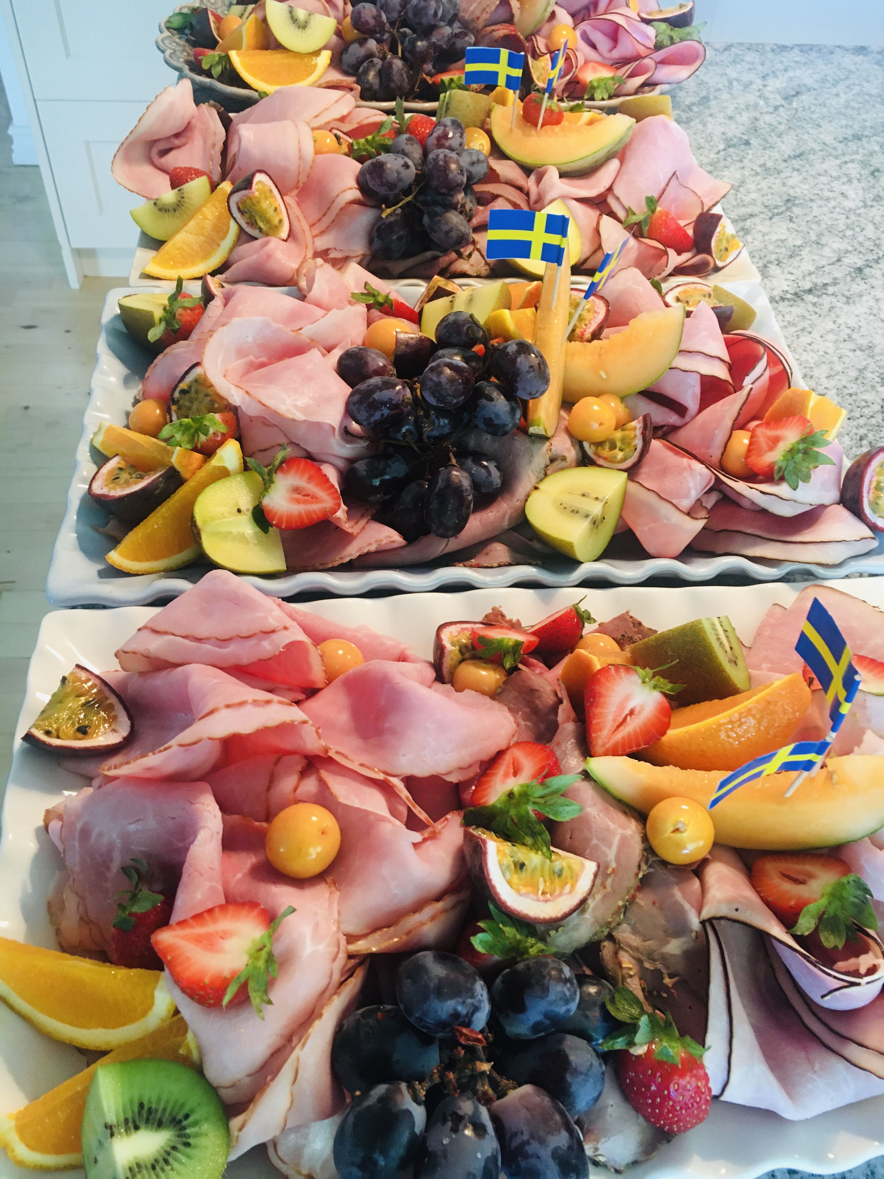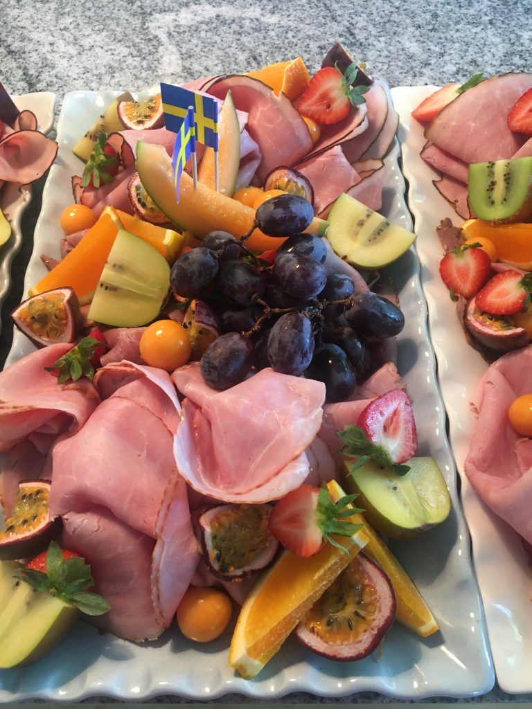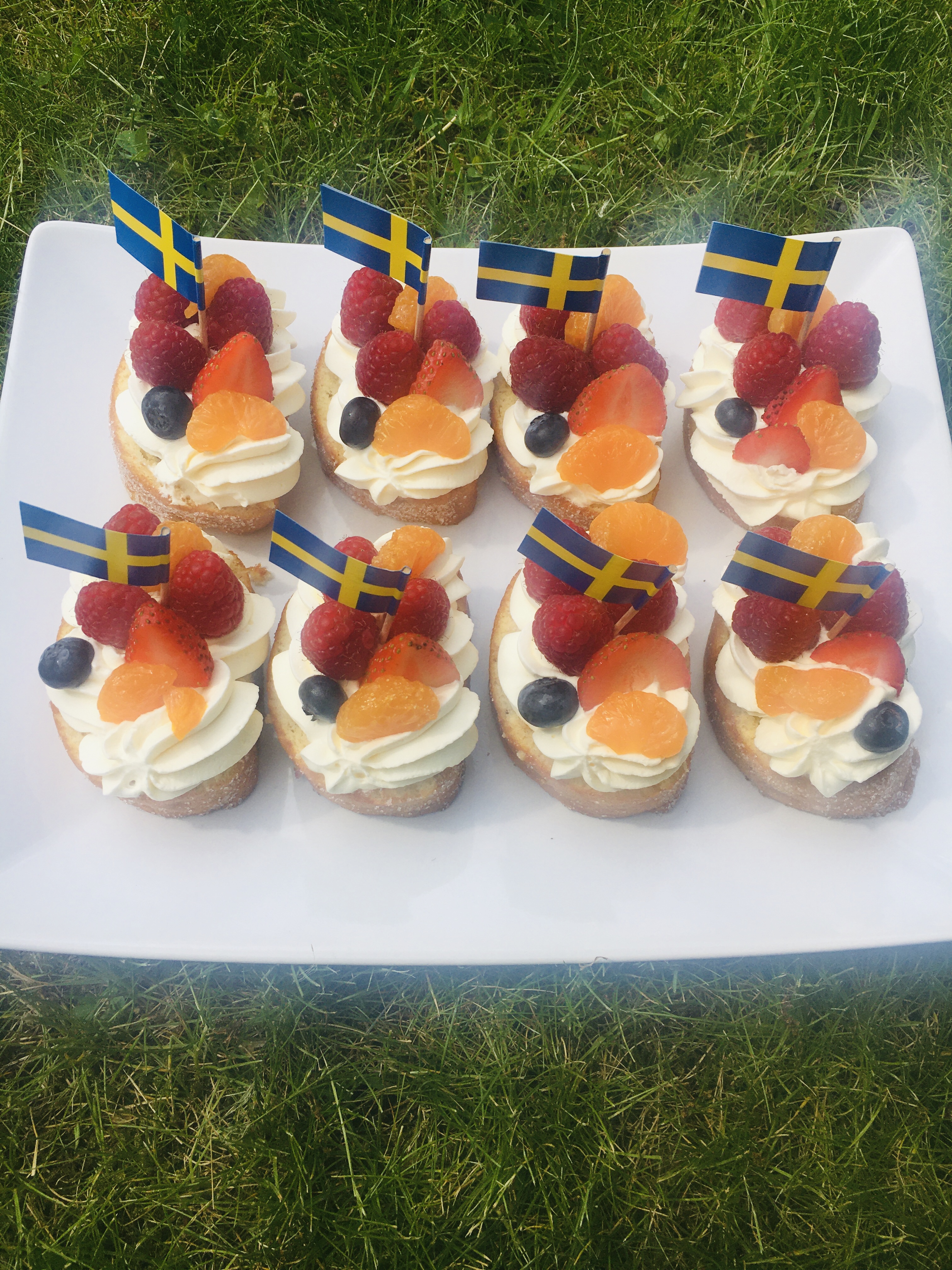 På kvällen firade vi hos min syster och svåger och där bjöds vi på god Skagen med asiatisktouch i rispapper, ugnsbakad röding och midsommar tårta