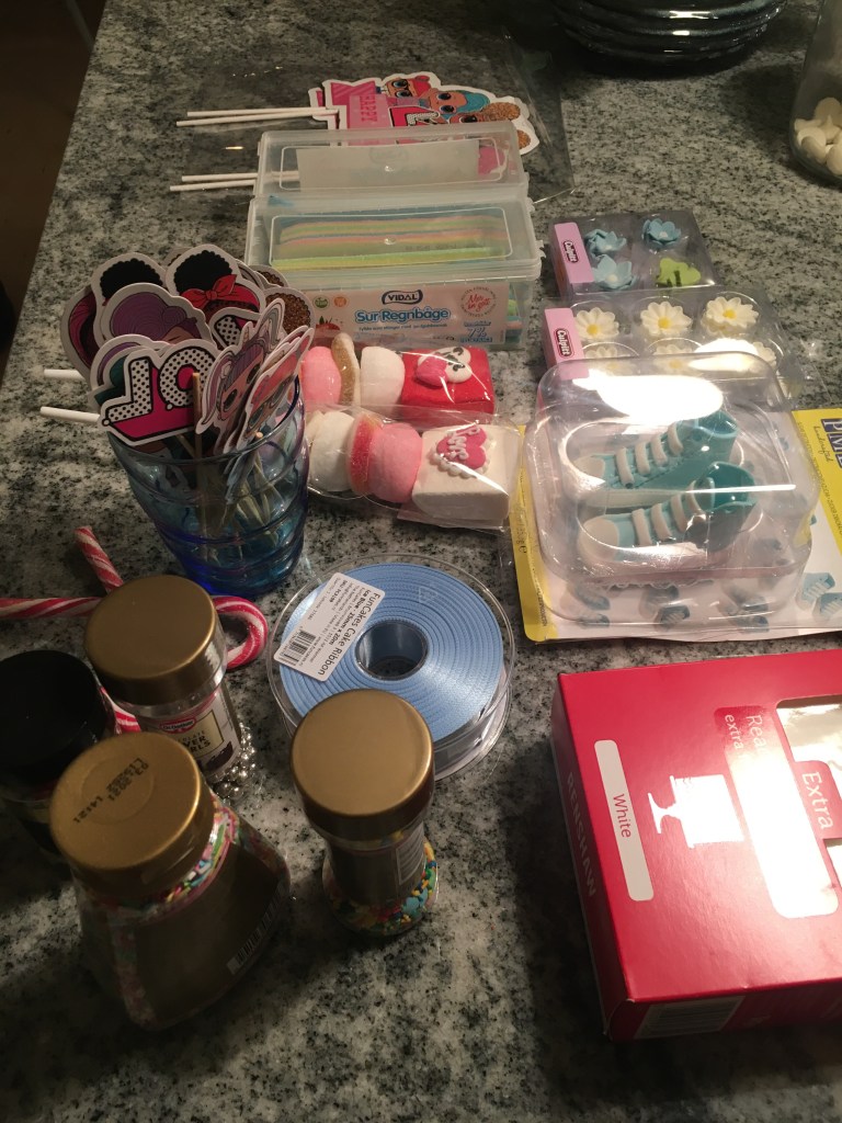 Dag 1 blir det en lol-tårta med hallon och hallonmousse till Li som fyller 8år. Till Nicolai som får sitt namn blir det prinsesstårta med jordgubbar och vaniljkräm.