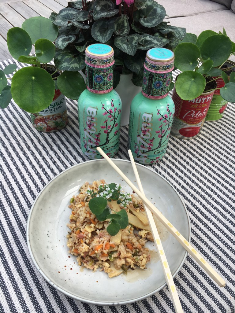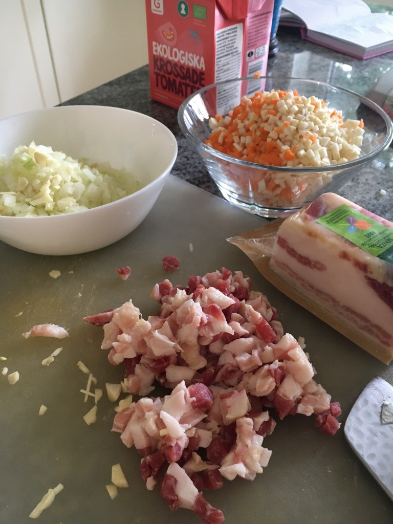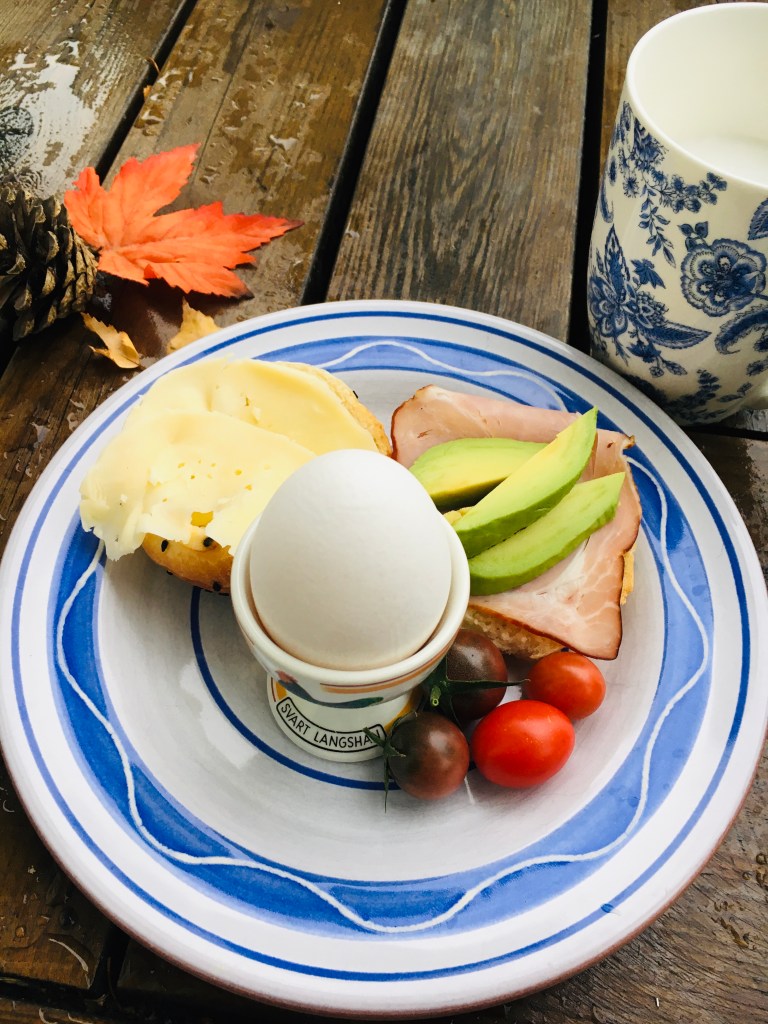 Toasten gjorde jag så att jag stekte ett par brödskivor i lite smör. Lade på en skiva skinka, lite avokado och en ostskiva, klart!